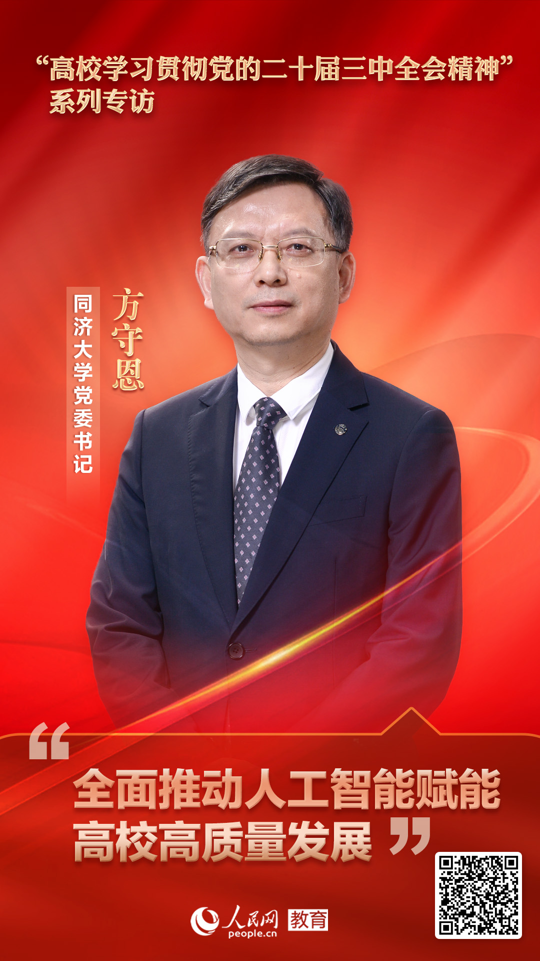 方守恩:面对新形势新任务新挑战,同济大学将科学系统推进全面深化改革和创新,围绕重点领域重点工作破难题、辟新域,进一步细化“数智化、绿色化、融合化”行动方案,推动人工智能赋能学科创新发展不断取得新进展,持续提升人才自主培养质量和科技创新策源能力,为教育强国建设贡献同济力量。