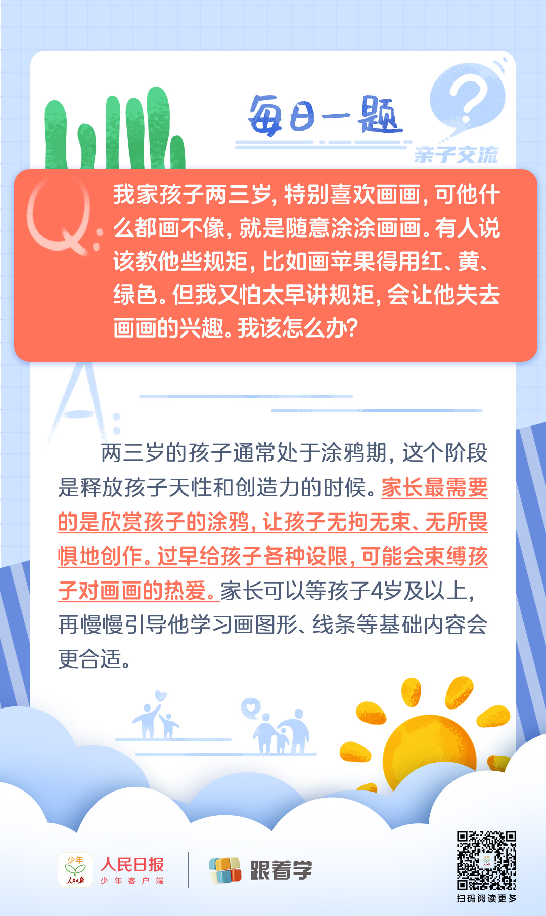 每日一题丨两三岁孩子“瞎画” 阶段,是否该教画画规矩?