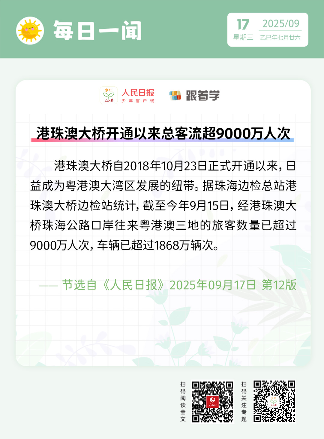 每日一闻丨港珠澳大桥开通以来总客流超9000万人次