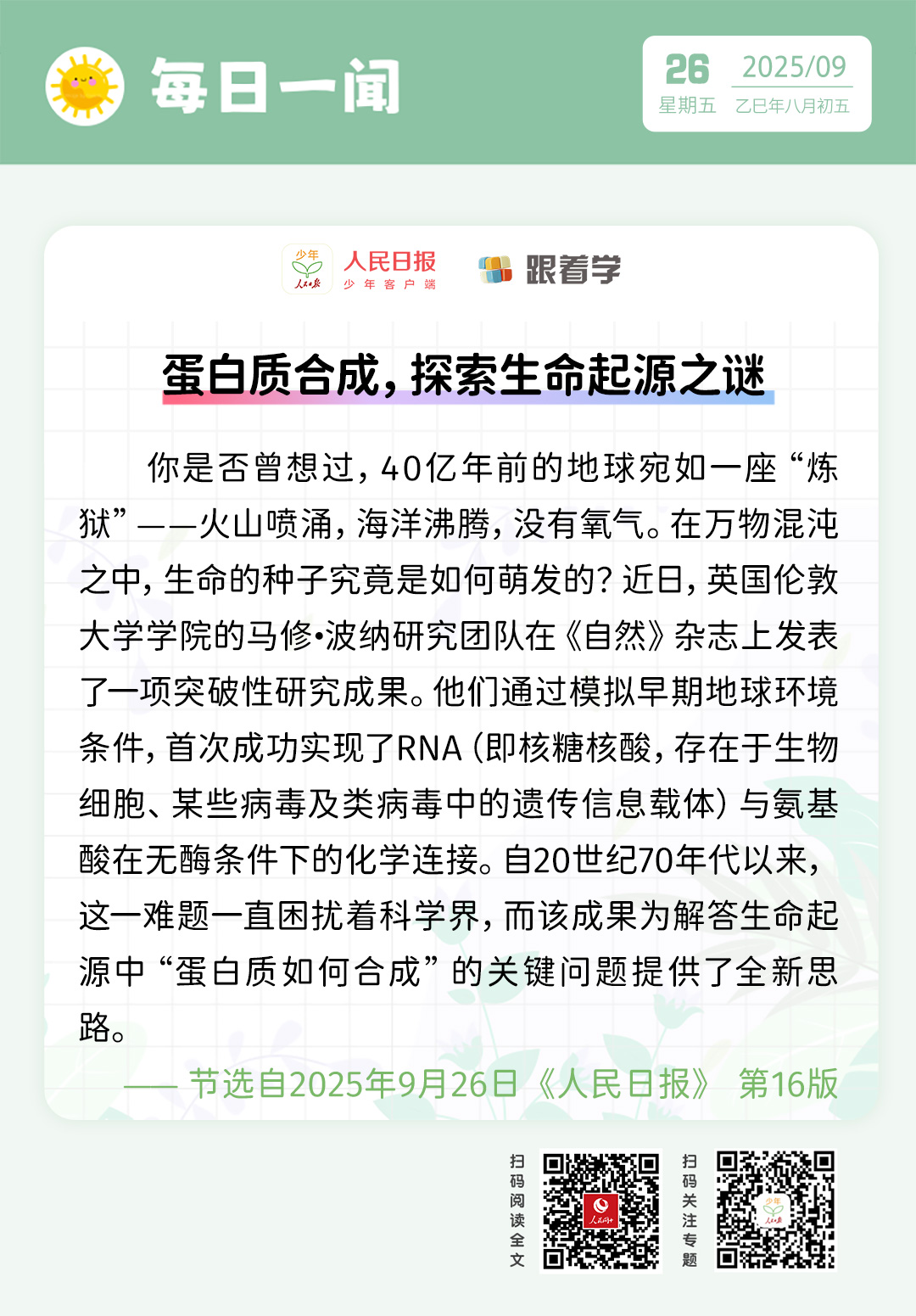 每日一闻丨蛋白质合成,探索生命起源之谜
