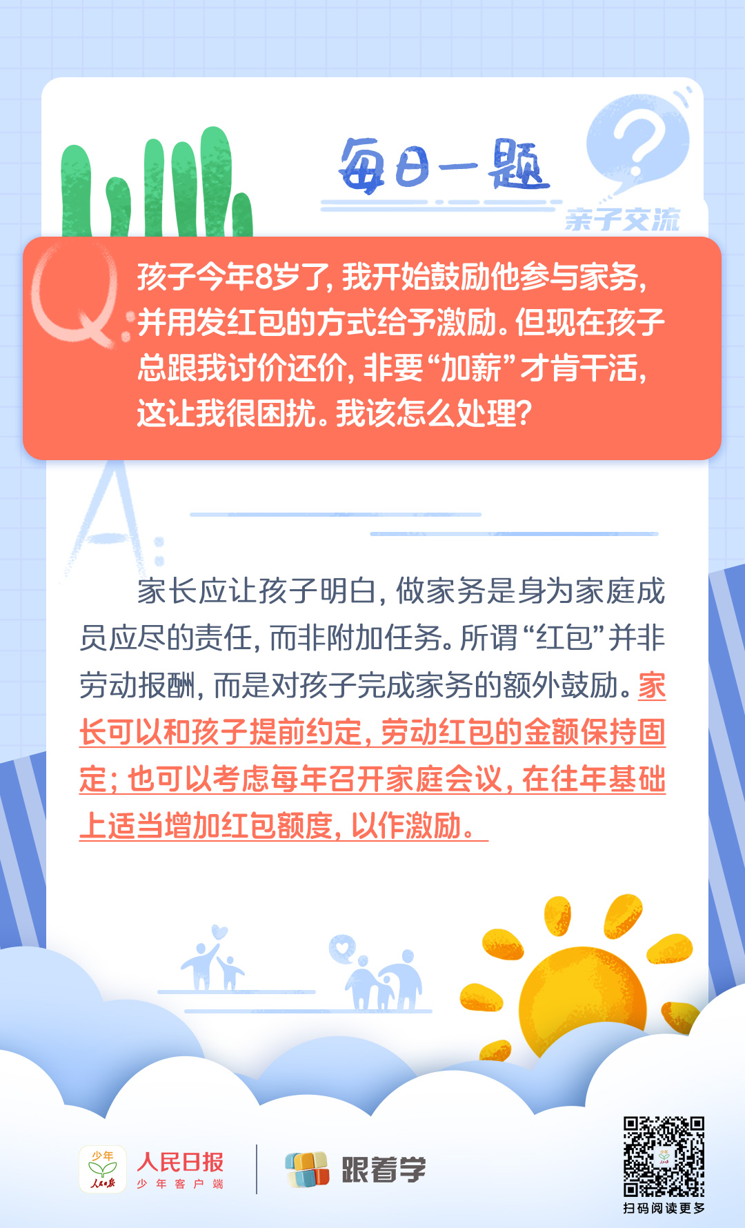 每日一题丨用红包鼓励孩子做家务导致他讨价还价,怎么办?